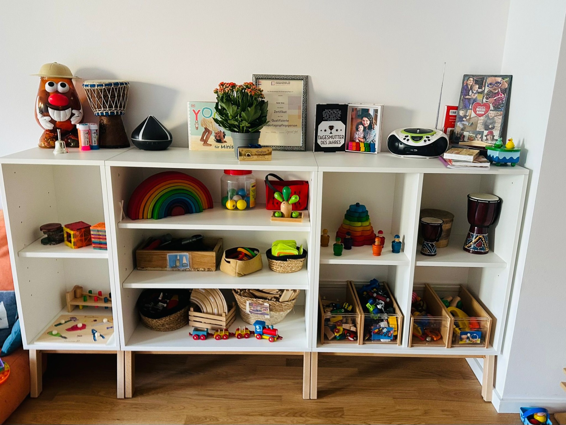 Beispiel: Mein Regal mit Montessori- Materialien ist stets frei zugänglich.